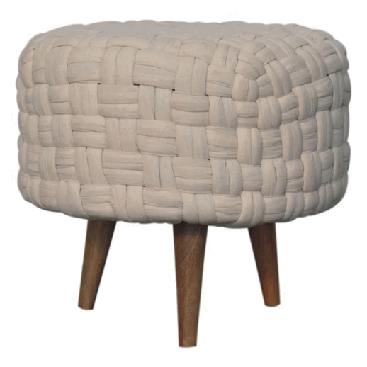 Grey Cotton Velvet Pleated Footstool with Gold Base